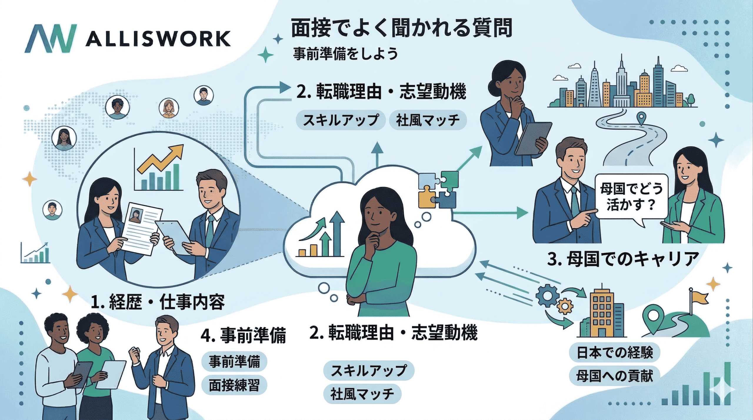 外国人求職者の方の面接では、今後の日本での働き方や生活について確認されることが多くあります。